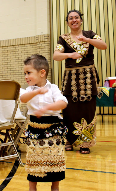She was beautiful, he was cute. At one point one of the other Polynesian families came up to give Tau'aho some cash (tradition when someone is dancing) and he was so excited. He took it out of his shirt and showed it to everyone! He is turning into quite the entertainer too. Afterwards I took of all of his outfit and was trying to keep him quite while the next person was describing Russia and he kept saying, "Where's my lollipop?" I would shush him so then he would whisper in a forceful, creepy kind of voice, "I danced! I want a lollipop!" This little guy has a mind of his own.