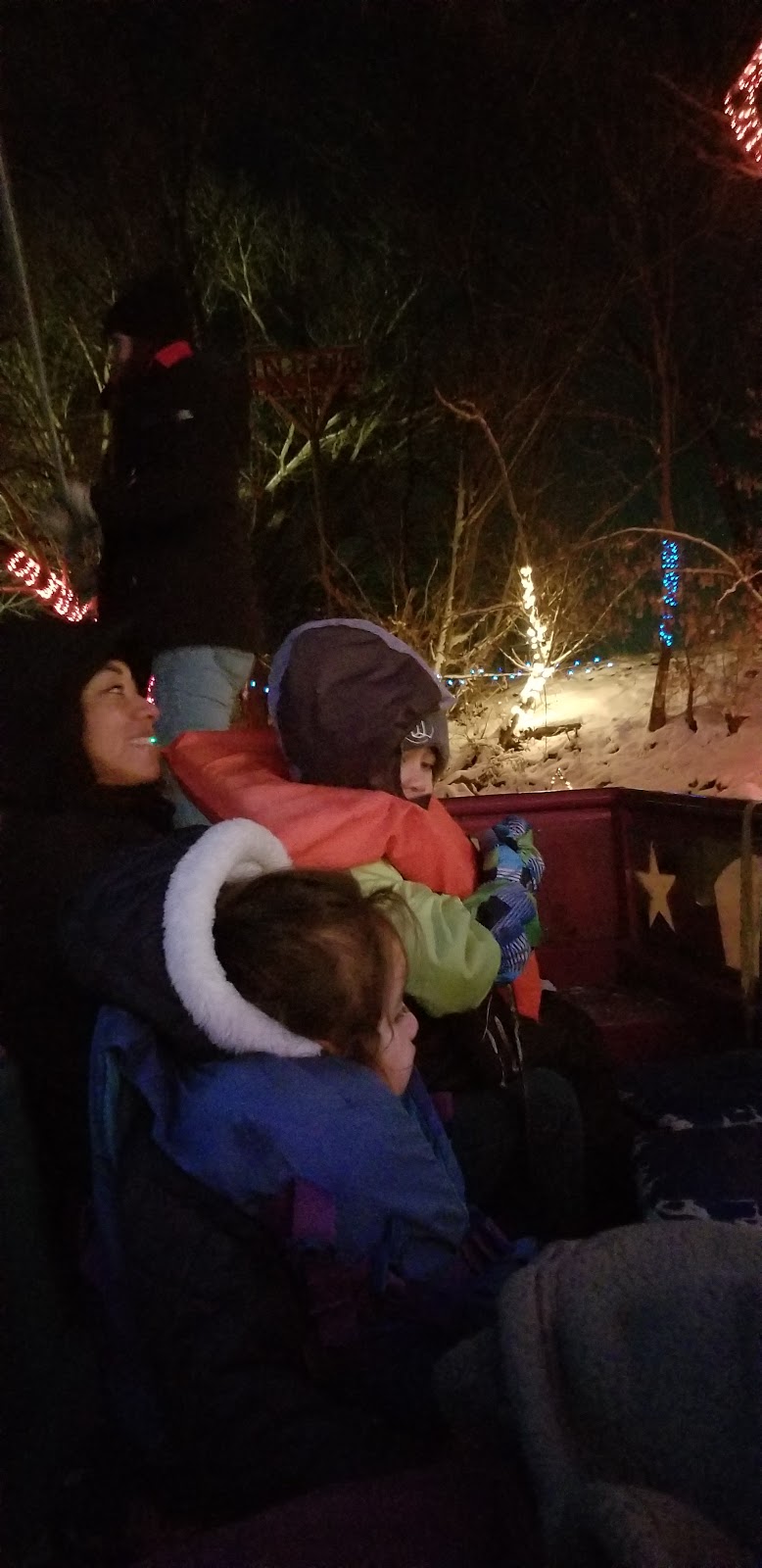 Koala Bear and Lucky Dragon loved the lights. She was really wary of the Santa that canoed out to us to tell us jokes. That was until he offered candy and started to leave, then she thought he was pretty cool. Today we went to the Provo River light cruise in Provo. It was fun to go see the lights. I think we were the only people crazy enough to be out in the cold.