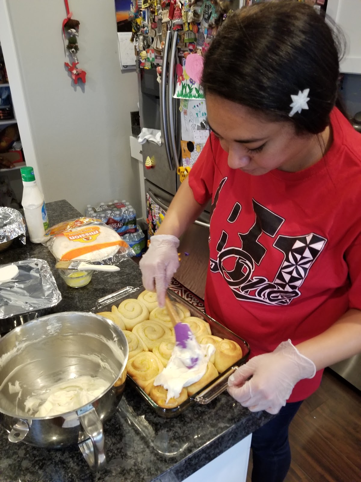 Lady Hiva kept my family tradition of having orange rolls for Christmas morning. Look at her multi-task! She is amazing!