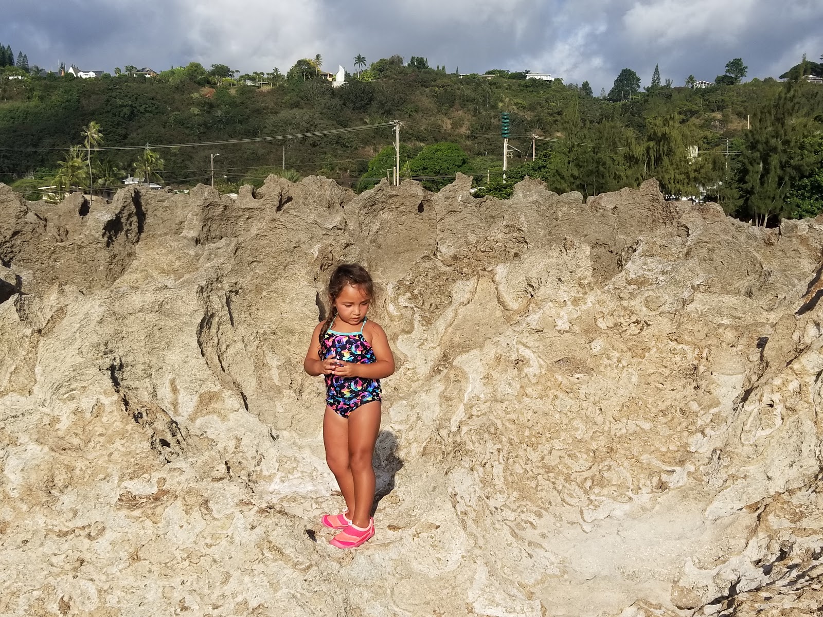 We earned more postcards at Waimea bay. We jumped off the rock...some took more coaxing than others! HAHA. Koala Bear even jumped off! Not the highest but she still jumped off. I was proud of her.