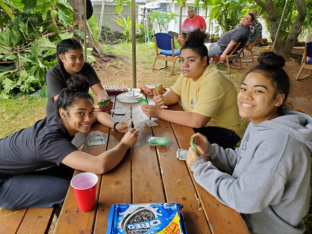 We had some friends come pick us up from the airport. They happen to be over here on a holiday and were willing to stop what they were doing to come give us a ride so nobody in the family had to leave the house where we were counting the minutes Lady Hiva's dad had left. We drove back to Kahuku and when we arrived, Lady Hiva and the kids were able to say goodbye. It was the last time her dad consciously knew she was there and opened his eyes. That would not have happened if we had waited for our original flight--again, made us thankful for the Delta agent doing what she did.