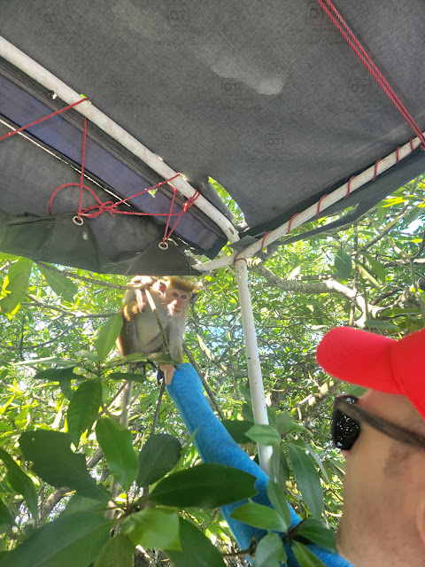 At one stop we fed some monkeys bananas. This may have been the favorite part of the entire trip for all of us. It was fun to see the whole family of monkeys come to see what we had and then to take the small banana pieces from us. At one point they were even willing to sit on the Muggles' laps to take some. Lucky Dragon tried to pet one of the monkeys and it swatted his hand away. We all laughed.