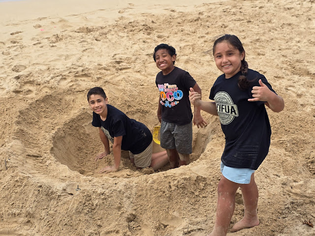 We were so lucky to go home to Hawaii for a few weeks on our first stop on our trip to Germany. We all love being there. It is so great to be there at the beach and to see family. We were lucky they planned the reunion so we could be there. It was so much fun! We laughed, we played, we talked story, and we were at the beach everyday--sometimes ALL DAY!