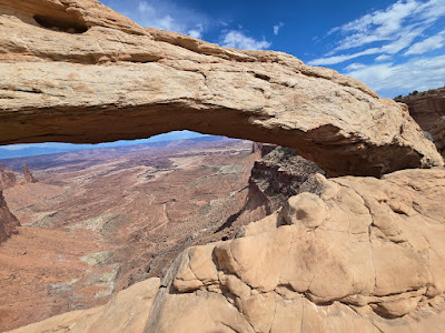 We then went to Canyonlands National Park. I knew I could not talk these people into doing a long hike, but we found a short one to another arch--Mesa Arch--that looks over the entire valley of canyons.